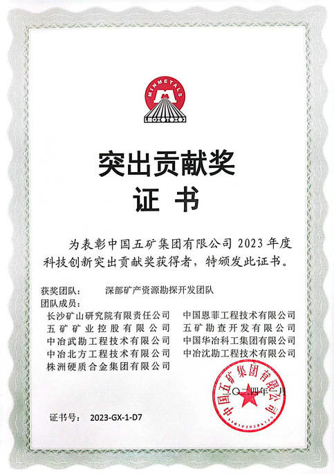 会议为获得2023年度集团公司科技奖励的代表颁奖,中冶北方作为未来产业“深部矿产资源勘探开发团队”中的骨干成员单位,荣获2023年度科技创新突出贡献奖。